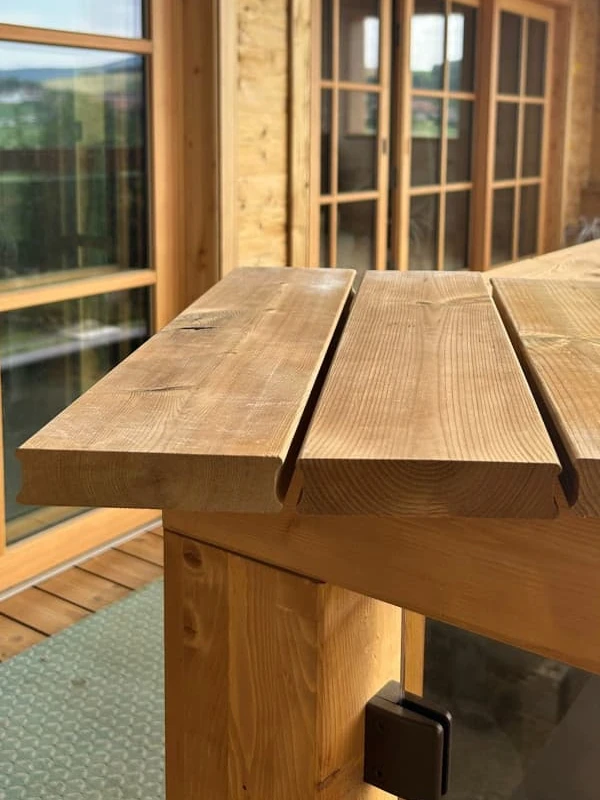 Capetele sunt zonele cel mai vulnerabile la absorbția umidității. Verificați dacă sunt fisuri longitudinale, dacă finisajul s-a retras sau dacă lemnul pare mai închis la culoare decât restul suprafeței — semn de umiditate reziduală sau absorbție din precipitații.